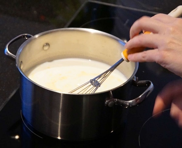 - Thêm từ từ, khuấy đều đến khi đạt độ sánh mong muốn.