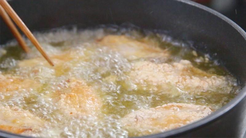 - Không chiên quá nhiều miếng cùng lúc: Giữ nhiệt dầu ổn định giúp lớp vỏ giòn và chín đều.