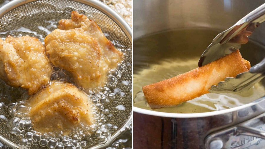 Không nên để dầu quá nguội (món dễ thấm dầu) hoặc quá nóng (vỏ cháy trước khi chín bên trong).